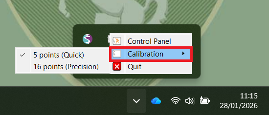 You will then be able to choose either 5 point or 16 point calibration. The 16 point calibration would be the best to choose to enable greater precision.